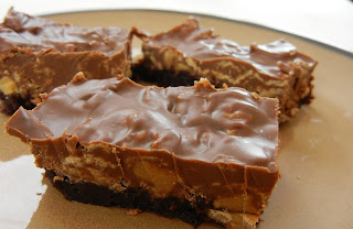 Chocolate and peanut butter over a layer of brownies; how brilliant. Oh, there is also a little cereal. I actually used whole wheat, organic cereal, so they are also incredibly healthy.