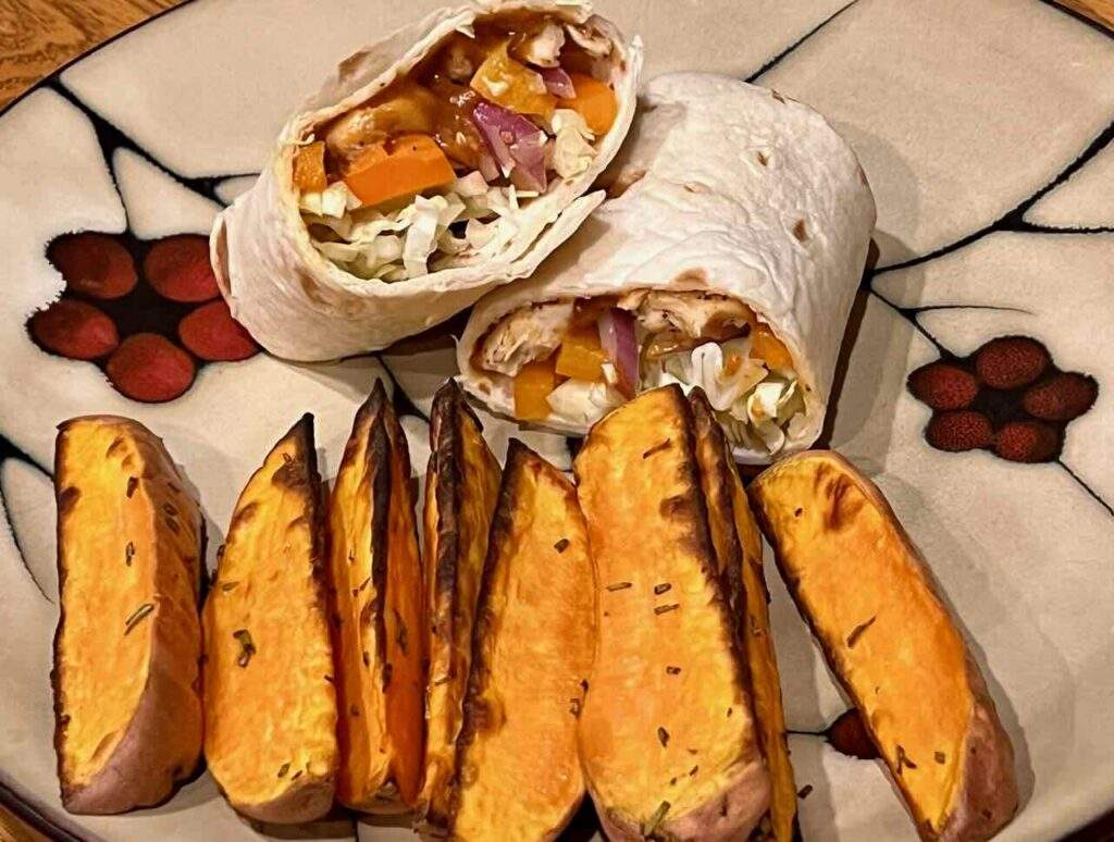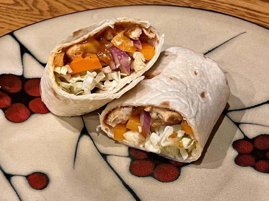 Bell Pepper, Onion, Cabbage: Veggies add color and crunch to the wrap.