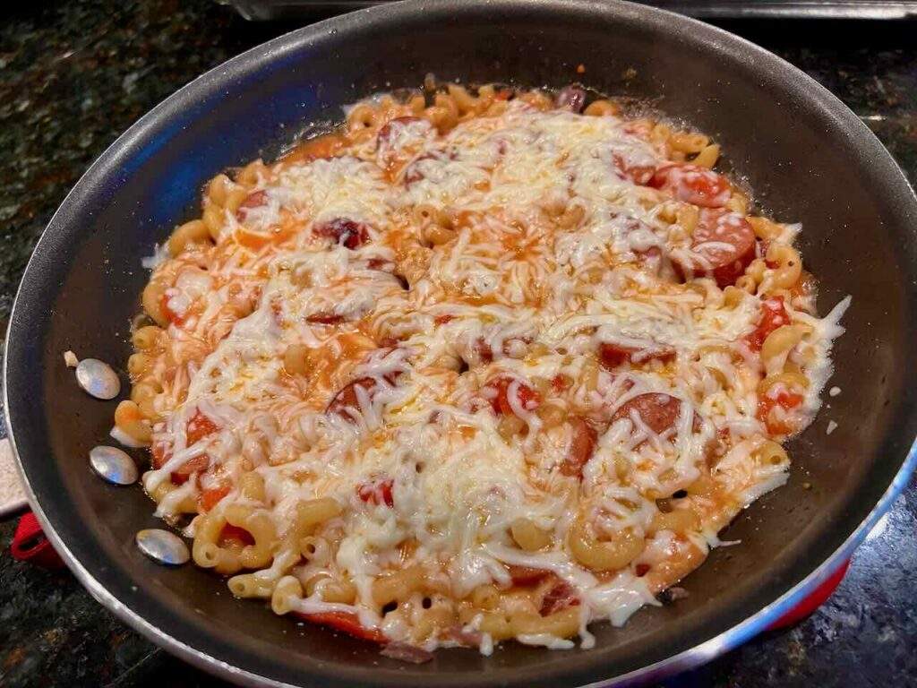 Sometimes you just need pasta. This recipe doesn’t even involve a separate pot of boiling water for the pasta. The macaroni cooks right in the skillet, taking on all the flavor.