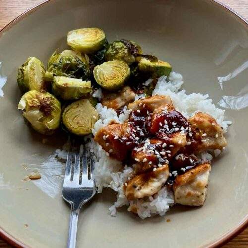 Honey Molasses Chicken with Brussels Sprouts.