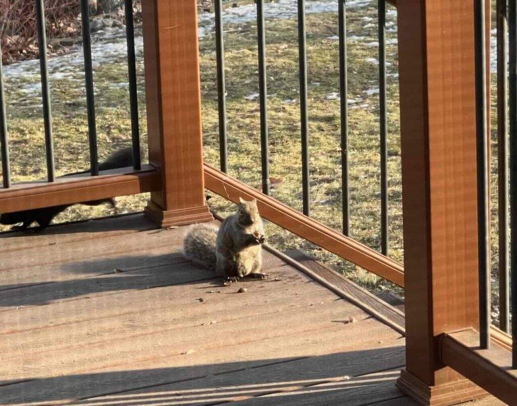 The outdoor pets, as we have come to call the squirrels and birds, were certainly affected by the sudden reappearance of winter. Instead of merrily enjoying the food offered, they had to dig through the snow for the nuts and seeds. That adorable little guy pictured above had no idea he would soon be sticking his little nose in the snow to look for food.