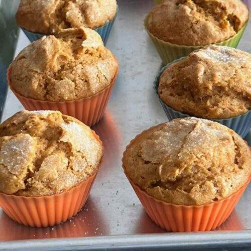 White Sugar & Brown Sugar: White sugar makes the muffins sweet and keeps them light and fluffy. Brown sugar adds warmth and complements the pumpkin flavor beautifully.